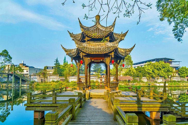 Visitors to the park can enjoy poems and couplets written by the poet, as well as quiet moments in the sea of bamboo and a panoramic view from the top of Wangjiang Tower.